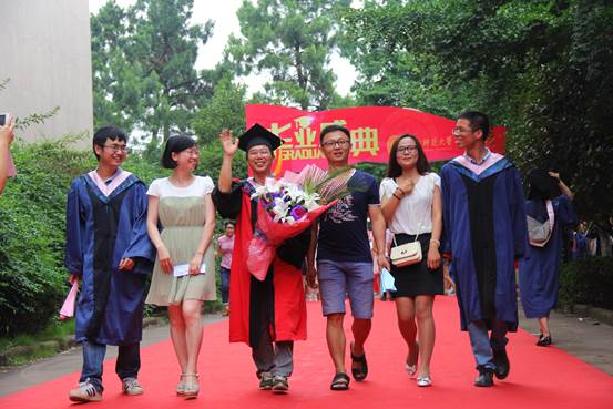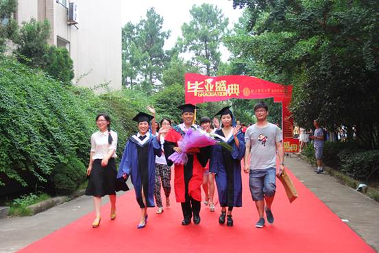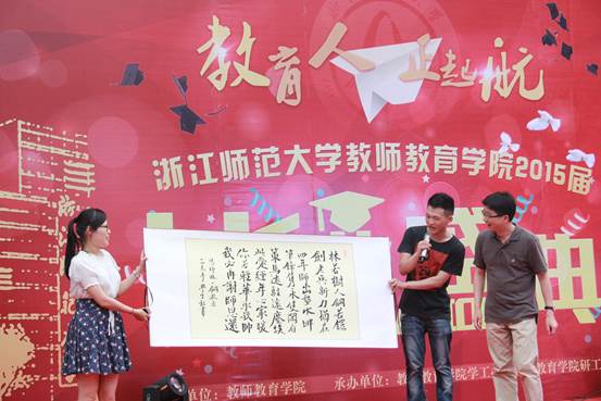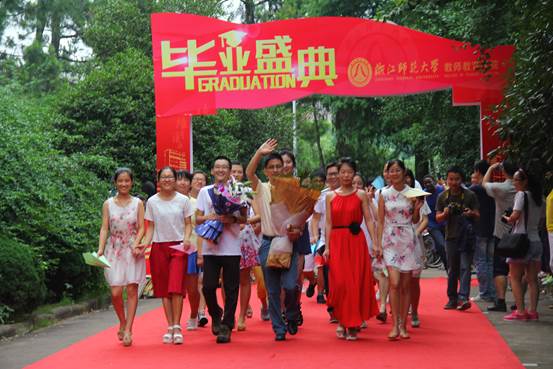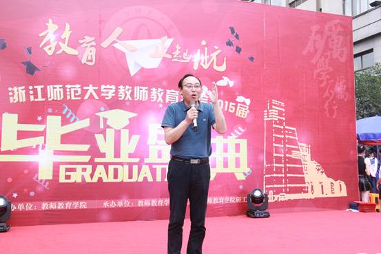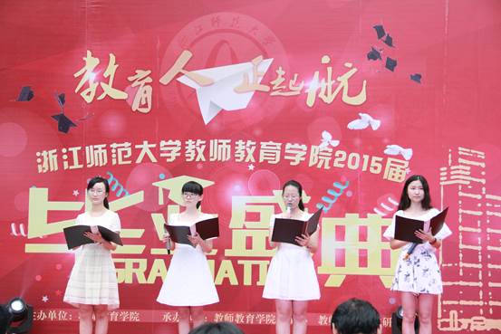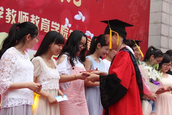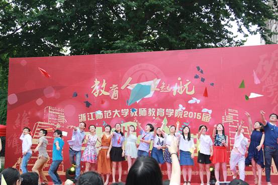 无论是繁琐的离校手续,还是四处响起的拍照声,无论是宿舍里空空的床铺,还是匆忙搬运着的行李,都在诉说着六月永恒的主题——毕业离别。每当变幻时,便知时光去,今时今日教师教育学院2015届毕业生们即将离开母校,步入人生新的旅程。 6月17日下午,我院数百名本科和研究生毕业生在初阳湖畔举行了一场别开生面的毕业盛典。院长张振新,院党委书记吴向齐,各毕业班班主任,研究生导师、学生家长代表等出席了此次盛典,共同为教师教育学院全体毕业生圆满完成学习任务,走入人生新阶段送上祝福。 走上红毯那一天 教师教育学院2015届莘莘学子结伴而行,踏上了意义非凡的红毯之路。四年时光匆匆已去,那帮青涩稚嫩学生已蜕变得沉稳与自信,更是有人一手抱着孩子,一手拿着毕业证书,为自己这段学习生活画上了完美的句号。 永远的祝福 院长张振新送给了毕业生们四句话:一,恭喜大家顺利毕业;二,好好工作,为母校争光;三,努力追求自己的幸福;四,常回母校看看。远道而来的家长们,也与孩子们共同见证了这场盛大的典礼。现场一位家长发自肺腑地说:“孩子这大学四年,是我们做父母的最关注师大的四年,这四年里我看到了师大的飞速发展,我很自豪我的孩子选择了师大。” 难忘师恩 毕业生代表们上台为老师们送上了精心准备的礼物,并在台上说出了藏在心中许久的话,对老师表达了感谢之情,并和老师一起展示了“教育人,正起航”几个大字。 匆匆那年,只剩离歌 朗诵、走秀、舞蹈、歌曲、放飞梦想的纸飞机……天下没有不散的筵席,毕业生们用各种形式演绎着他们对母校的不舍,对学习时光的怀念。一个个节目的表演过程中,有毕业生开始哽咽,相互拥抱,享受着作为师大学生的最后时光。“你身在何方我不管不管,请为我保重千万千万……”最后,苏玮玮同学以一首《离别的车站》作为演出的结尾,并祝福学姐学长们走向更美好的明天。 至此,教师教育学院2015届毕业盛典画上了圆满的句号,但对毕业生们而言,这仅仅是一个开始,他们的梦想才刚刚起航。