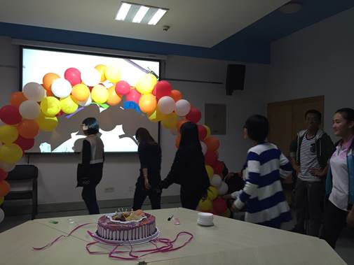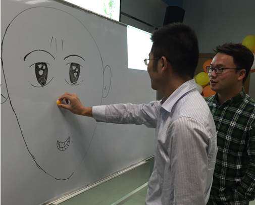 随着蜡烛的吹灭,主题班会进入了第二个环节——小游戏。贴鼻子小游戏满载着儿时的回忆。主持人邀请辅导员程老师、班主任陈老师以及张老师和黄老师共同参与,师生互动。“你是喜欢高鼻梁呢?还是喜欢低鼻梁呢?”程老师的这句话引得同学们哄堂大笑。