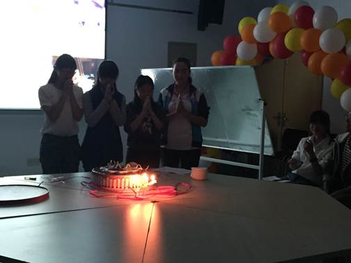本次主题班会分为为同学庆生、回顾幼时游戏、成长历程展示、举办成人仪式、嘉宾分享、同学分享感悟六个环节。班会是从一个惊喜开始的······四名同学恰巧在九月或十月过生日,在她们不知情的情况下,同班同学悄然准备了一切为他们庆生。伴着同学们的祝福,四名同学一起许下了心愿。