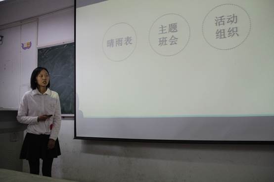 在本次比赛中,每位选手要进行三个方面的展示——工作述职、心理案例分析及心理主题班会的设计。在述职报告环节,选手们采用PPT结合解说的方式概述了自己在担任心理委员以来所展开的工作和特色活动等,在总结出自己的特色与不足的同时,也展示了他们所取得的成果与自身收获。随后的案例分析环节,选手们认真地分析了案例主人公所存在的心理问题,阐述了自己的解决方案,针对评委老师们会就案例以及现实提出的一些问题,选手们会详细地一一表达自己的想法。选手们充分利用自己的优势,突出自己的特色,设计了主题、形式丰富多彩的心理主题班会,赢得阵阵喝彩和掌声!