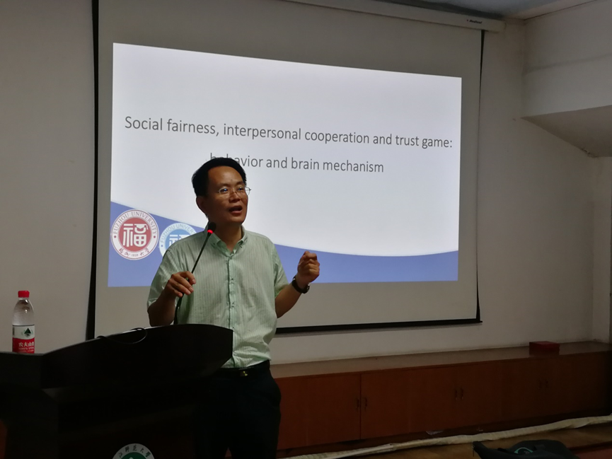 2017年9月27日19点30分,**文教授在17幢8楼阳光房进行了主题为“人际合作与信任的脑认知”的学术报告。本次报告由浙师大继续教育学院副院长孙炳海教授主持,参加此次学术报告的人员主要为我院部分老师、研究生及本科生。