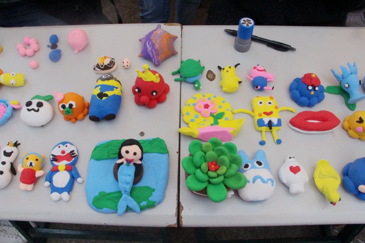 我院心理部筹备了“青春旋律”活动,要求参与者4人一组,以“青春旋律”为主题,利用超轻黏土完成一份作品。鲜艳轻巧的黏土吸引众多“粉丝”参与。不仅仅是同学们,教职员工和小朋友也乐在其中,众人一起发挥想象、用心制作。生机勃勃的多肉植物、带着皇冠的彩色章鱼、形态可掬的小美人鱼……一件件精致的粘土作品在“大师们”手下接连诞生。