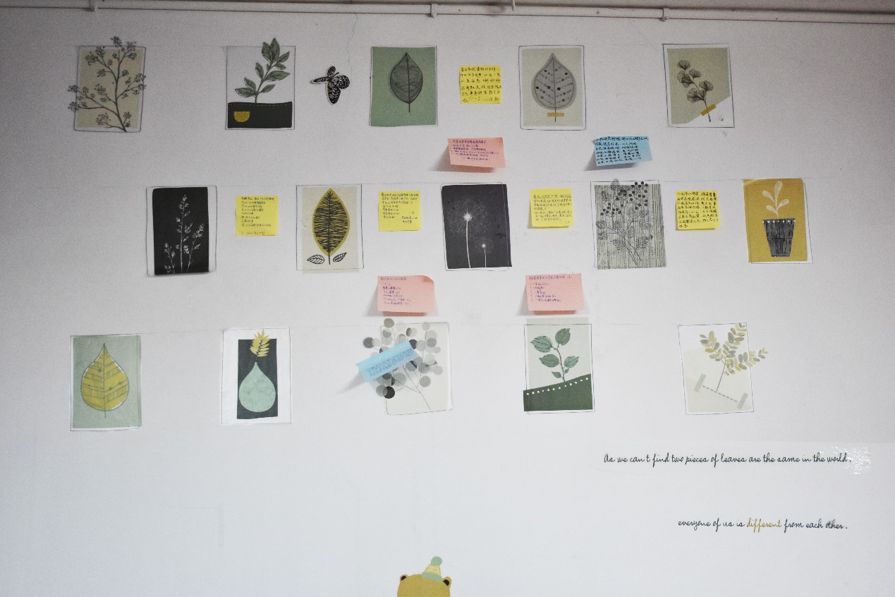 12幢103寝室的“103含笑居”呈现中国水墨风格,站内不仅有记录寝室成员日常生活回忆的照片角,还有赵孟頫体的书法心情符号和用于存放心情日记的DIY小香袋,搭配折纸花朵、爱心、千纸鹤和折扇装饰,形成一幅心情与生活的写意画,更意在鼓励四位室友书山常历、互通有无。