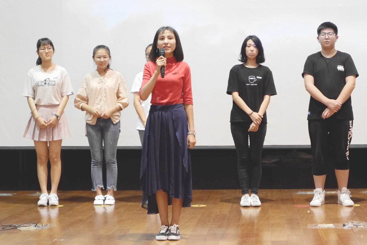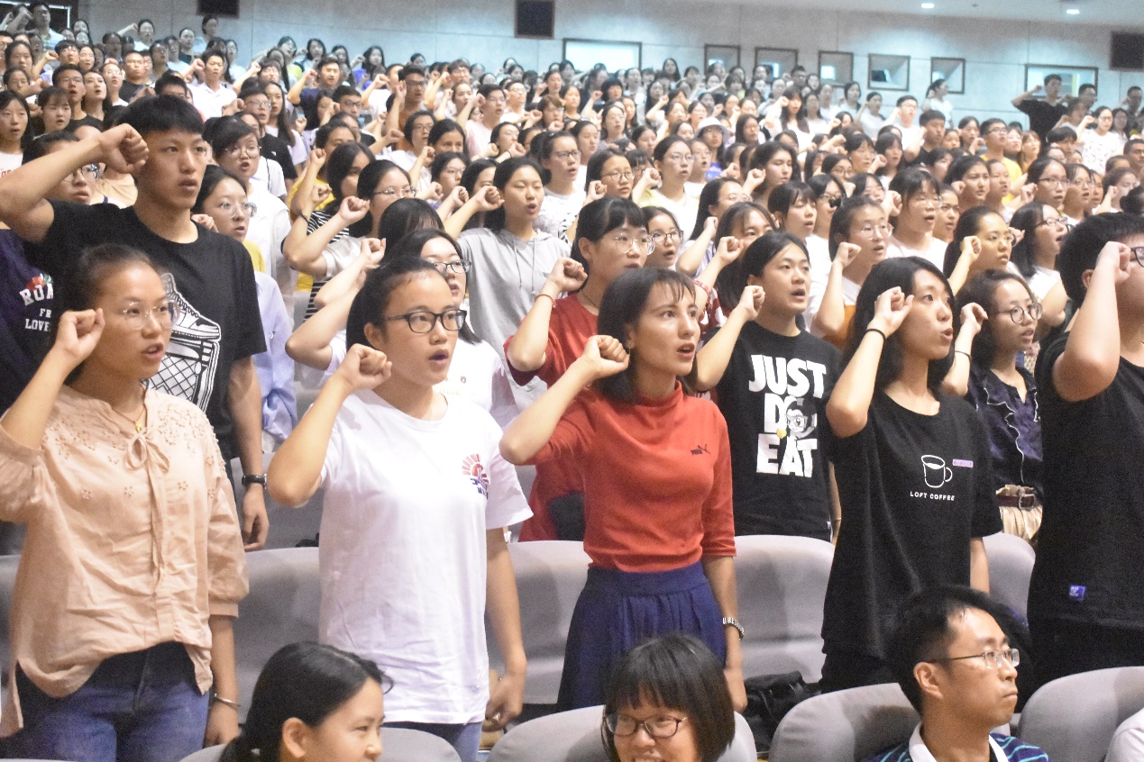 新生辅导员张文潇向大家分享了自己大学时与辅导员相处的愉快经历,并表示希望与新生们成为知心朋友,一同度过四年快乐而充实的时光。随后,本科新生和院演讲队共同朗诵诗歌《闪耀吧!青春的火光》,字句间真切的情感引起在场所有人的共鸣,新生们纷纷起立,在主持人的带领下进行庄重宣誓。
