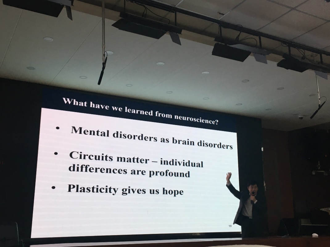 李新民教授结合基因组学、神经科学和信息技术科学这三大革命,系统阐述了精神病学发展的前世今生,并以抑郁症为例,讨论了科技在抑郁症诊疗中的作用。最后针对我校的情况,分享了国外高校对精神卫生问题的管理与相应的解决办法。整场报告理论和实践结合的非常紧密,到场的我系师生以及校心理咨询中心的老师均表示收获满满。