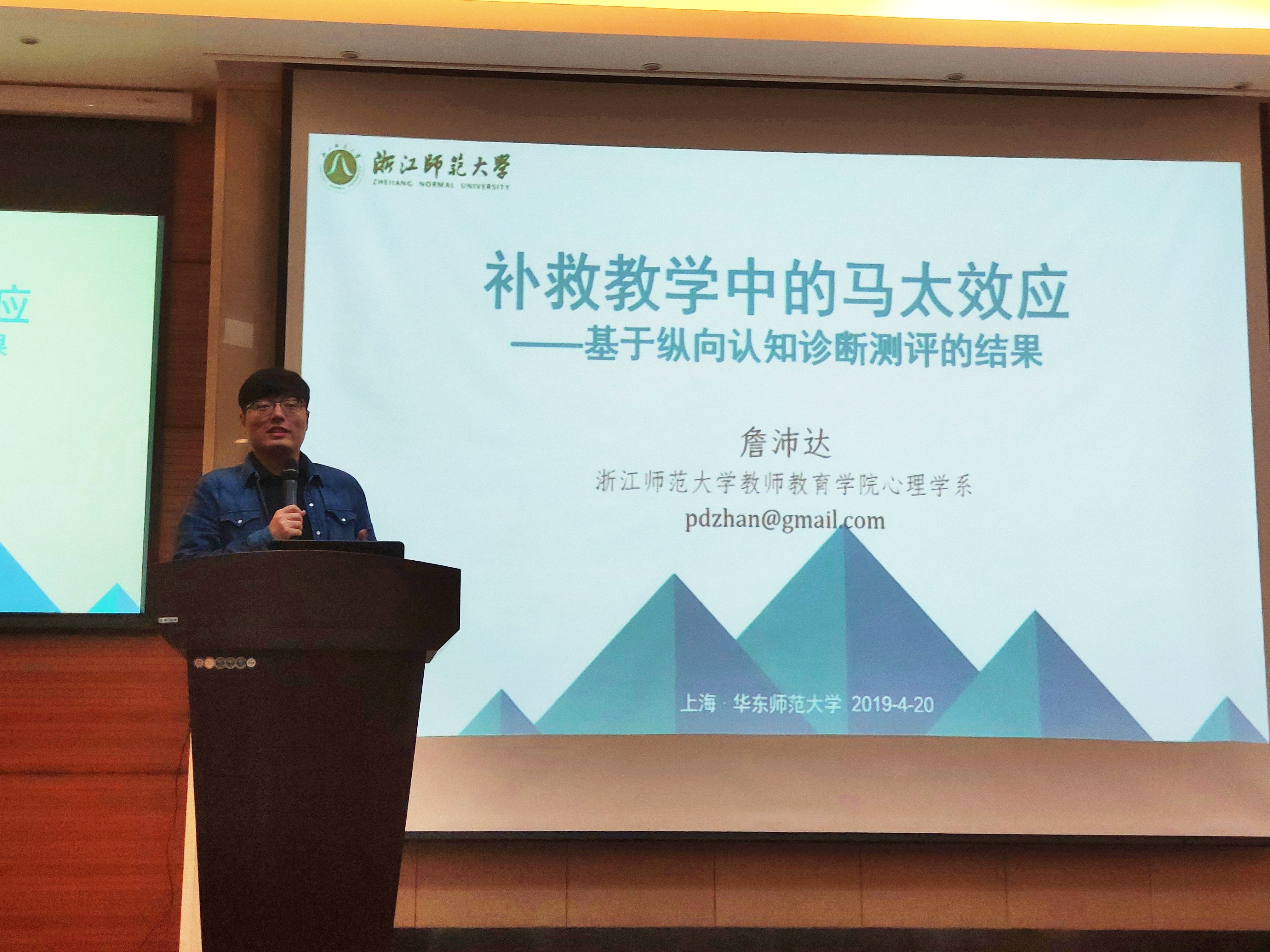 论坛“心理发展与教育”专题报告中,詹沛达博士进行了主题为“补救教学中的马太效应——基于纵向认知诊断测评的结果”的学术报告,从心理计量学视角探讨了如何将心理学研究成果应用于教育实践,为促进学生学习提供心理学方案。