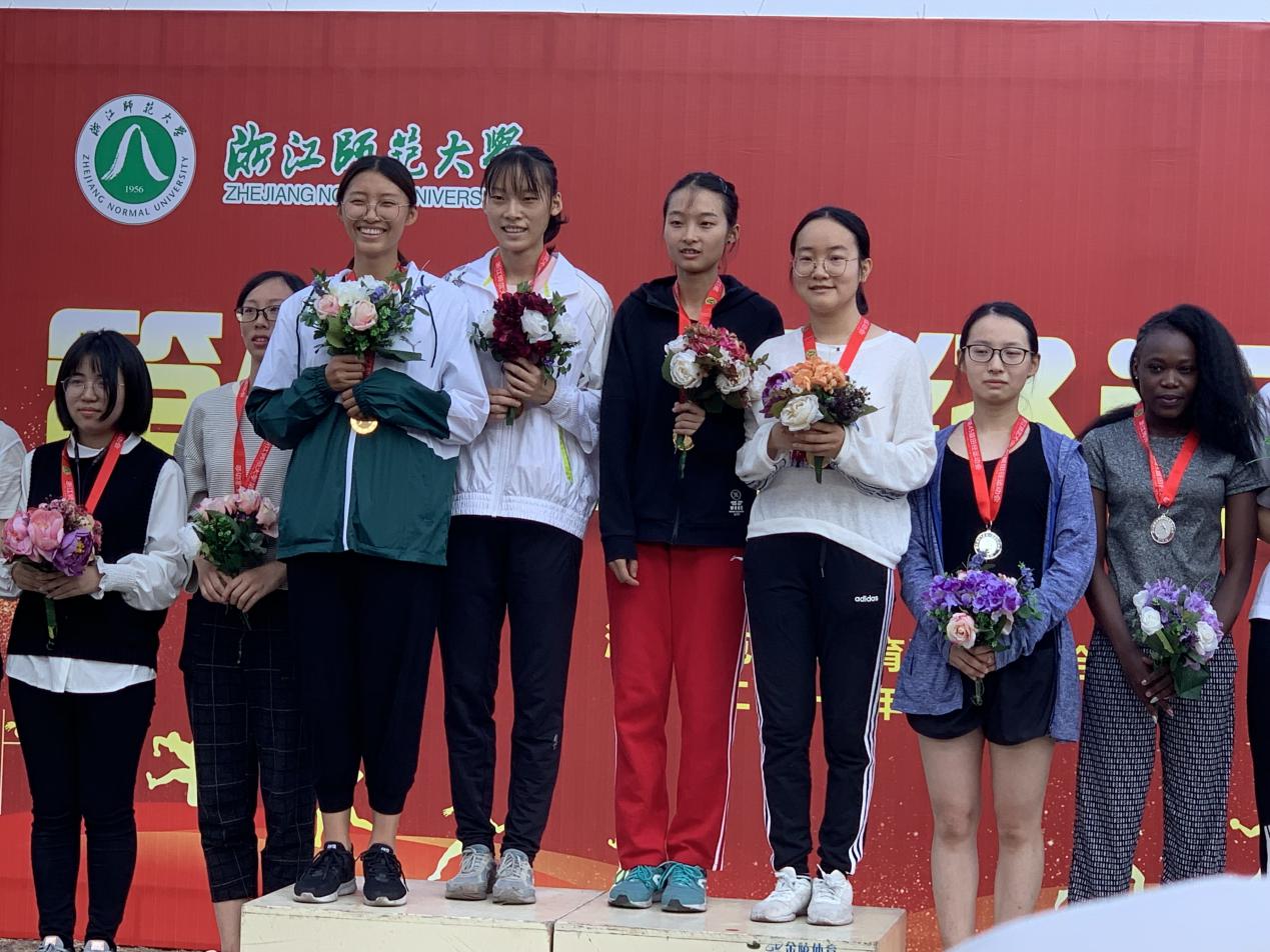 运动会第一天,我院就斩获了不少喜人的成绩。19日上午,陈子怡和余鸿仪分别获得了女子铅球决赛的第三名和第八名;**、陈也和李雨然也在女子跳远比赛的决赛中包揽金银铜,分别获得了冠亚季军的好成绩。在田径赛场上,陈坤力压众人,斩获男子110米栏决赛第一名。更令人欣喜的是,我院包揽了100米栏的所有奖牌。其中,陈婕晓以15.89秒的优异成绩,轻松摘得校女子100米栏的桂冠,并打破校赛记录。同时,戴津津和孙鑫怡分获第二、和第三的好成绩。随后,**同学也轻松获得女子100米决赛的第一名。