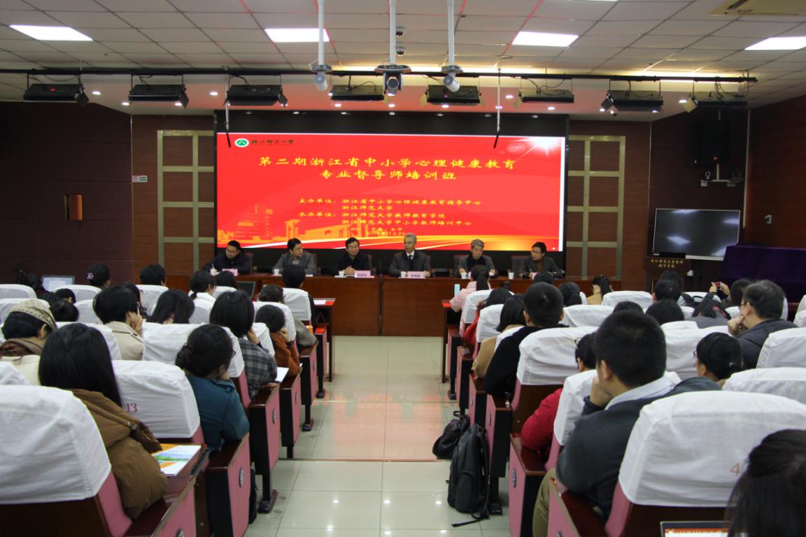 2019年11月29日上午,浙江省中小学心理健康教育专业督导师培训班在17幢112报告厅顺利开班,开班典礼由浙江师范大学教师教育学院院长助理李云星主持,浙江师范大学副校长李伟健、浙江省教科院副书记吴贤平出席会议并发表讲话。参与本次开班典礼的还有省心指办主任庞红卫、浙江师范大学隋光远教授、省心指办老师付春林、浙江省中小学心理健康骨干教师及50余名培训学员。