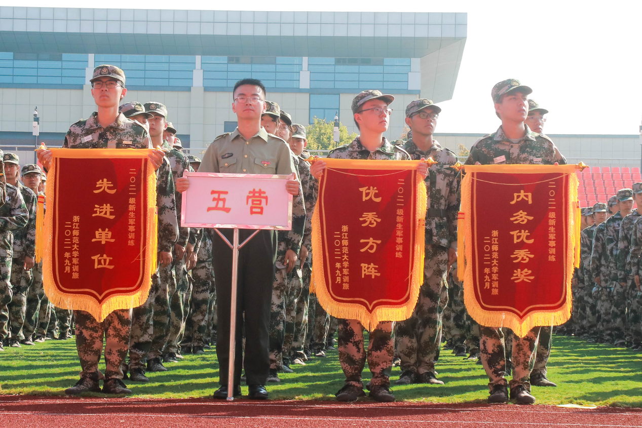 9月26日,浙江师范大学2021级新生军训汇报演出在东田体育场隆重举行。沙场秋点兵,威武展英姿,在为期两周的军训中,教师教育学院的学子们表现出色,在军训汇演中荣获“内务优秀奖”“先进单位”“优秀方阵”三面锦旗,为本次军训画上了一个圆满的句号。