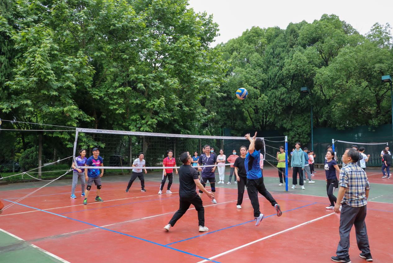 比赛采用三局两胜的规则。两个学院分别派出两队老师,在两个场地同时进行比赛。第一局比赛,大力的发球、高高跳起的拦网、一声声“我来接”、“我打”的配合以及相互之间的加油喊好,让教育学院的老师们打出了气势,分别以21比11与21比17拿下第一局。