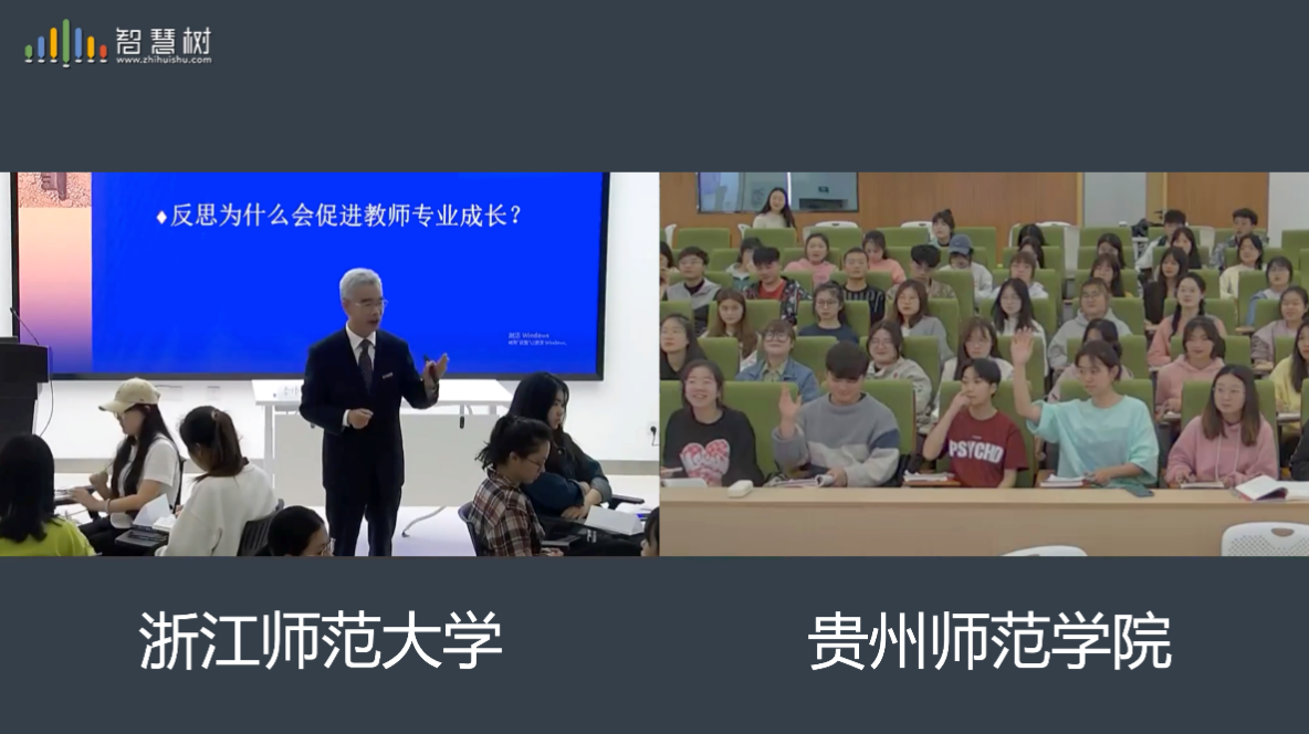 浙江师范大学李伟健副校长和贵州师范学院熊世桓副校长共同致辞,贵州师范学院教务处长、浙江师范大学研究生院等领导与两校教育学心理学相关专业的大学生参加现场课堂,两门课程还分别吸引全国在线听众8000和5000多人。