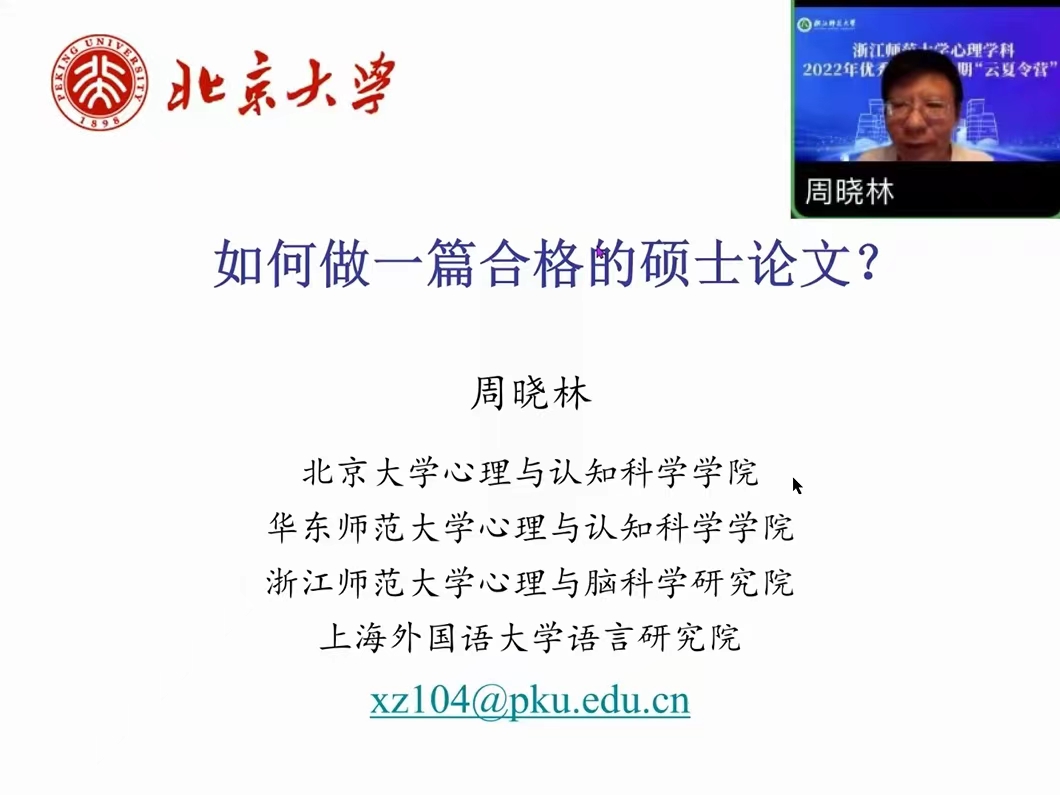专题讲座环节,中国心理学会、中国社会心理学会前任理事长、浙江师范大学杰出教授乐国安教授和中国心理学会候任理事长、教育部长江学者苏彦捷教授以及中国心理学会前任理事长、教育部长江学者、浙江师范大学双聘教授周晓林分别作了题为《我对心理学的认识》《聊聊研究选题那些事》《如何做一篇合格的硕士论文》的学术讲座。