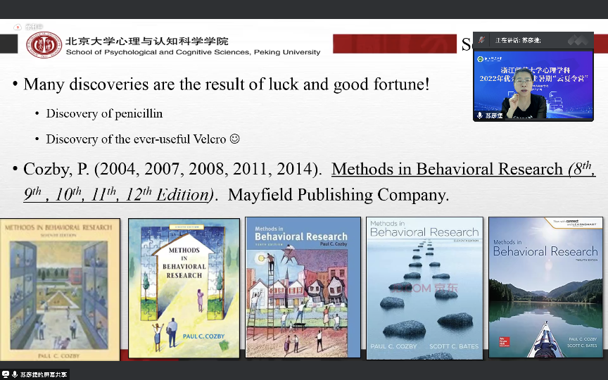 心理学科素来重视对研究生科研方法的训练与指导,本次夏令营也邀请李新宇、孙琪、李华云、谢瑞波四位老师开展了“论文撰写与文献检索”、“心理学基础统计和图表绘制”、“认知神经科学方法”、“追踪研究方法”等心理学研究方法的系列专题讲座。