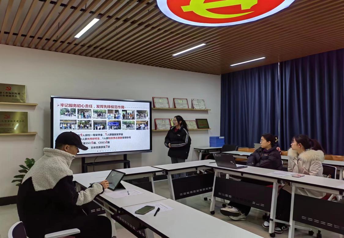 会上,5个学生党支部书记依次做述职报告,围绕“履职情况”“存在问题”“改进措施”三个方面对2022年度党支部建设工作进行回顾、汇报。在过去一年里,我院各学生党支部以学习贯彻党的二十大精神为主线、以夯实党史知识和提升党性修养为目标,结合专业特色开展了科研、讲座、先锋岗等多样化的系列党建活动,实现了工作形式创新和支部建设完善。此外,各学生党支书还在会议上就支部建设中存在的问题进行了深刻分析,并提出了今后加强和改进工作的思路与措施,力求在工作中找经验、在谋划中求发展,充分发挥党支部战斗堡垒作用。