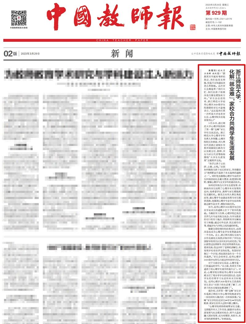 “永利23411将持续凝聚家校力量,力图提升育人工作实效,鼓励学生将生涯发展与社会需求相结合,将个人追求融入国家发展,成为有理想、有担当、有本领的浙师青年。”孙炳海说。