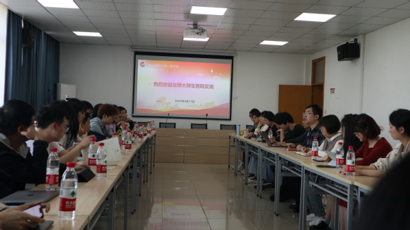 有朋自远方来,不亦乐乎。座谈伊始,贾磊老师先代表学院对北师大师生的到访表示了热烈欢迎。并向师生们介绍了浙师大心理学院本科教学现状和人才培养模式,包括“一核两翼”教学组织模式和本科教学“实验、实践”双平台建设等。 胡清芬教授和王乾东老师也就北师大心理学专业本科生的培养模式和课程安排进行了交流。