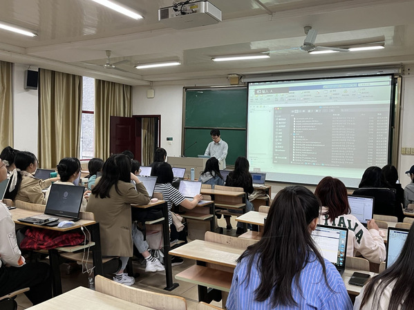 王成老师先进行了《脑电数据分析:理论与MATLAB实操》两课时的课程教学。王成老师带着学生走进代码,在课程中,结合脑电分析、实频分析、ERP分析,以现场制图为例,讲解之后现场指导学生进行实操。通过理论加实践的方式,加深同学对课程内容的掌握,并运用到具体研究里。