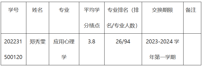 经个人自主申请、学院审核,本学期国内高校交换生推荐情况已确定,现公示如下。如有异议,请于2023年6月2日17:00前向学院教务办反馈(电话:82281372 )。