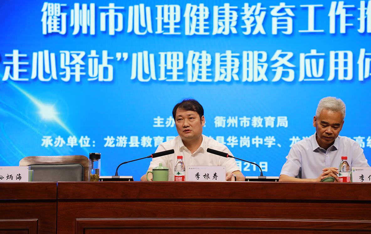 6月21日,衢州市心理健康教育工作推进暨“走心驿站”心理健康服务应用体系观摩会在龙游县举行。浙江省儿童青少年心理健康与危机干预智能实验室(简称“实验室”)首席专家李伟健和孙炳海教授应邀出席。中共衢州市委教育工作委员会副书记、党委书记、教育局局长季根寿、教育局总督学程卫东,衢州市教育局副局长曹晓华,龙游县副县长、教育局局长舒建明,以及衢州市各县(市、区)教育局分管领导、校长、心理健康教研员和教师代表300余人参加会议。