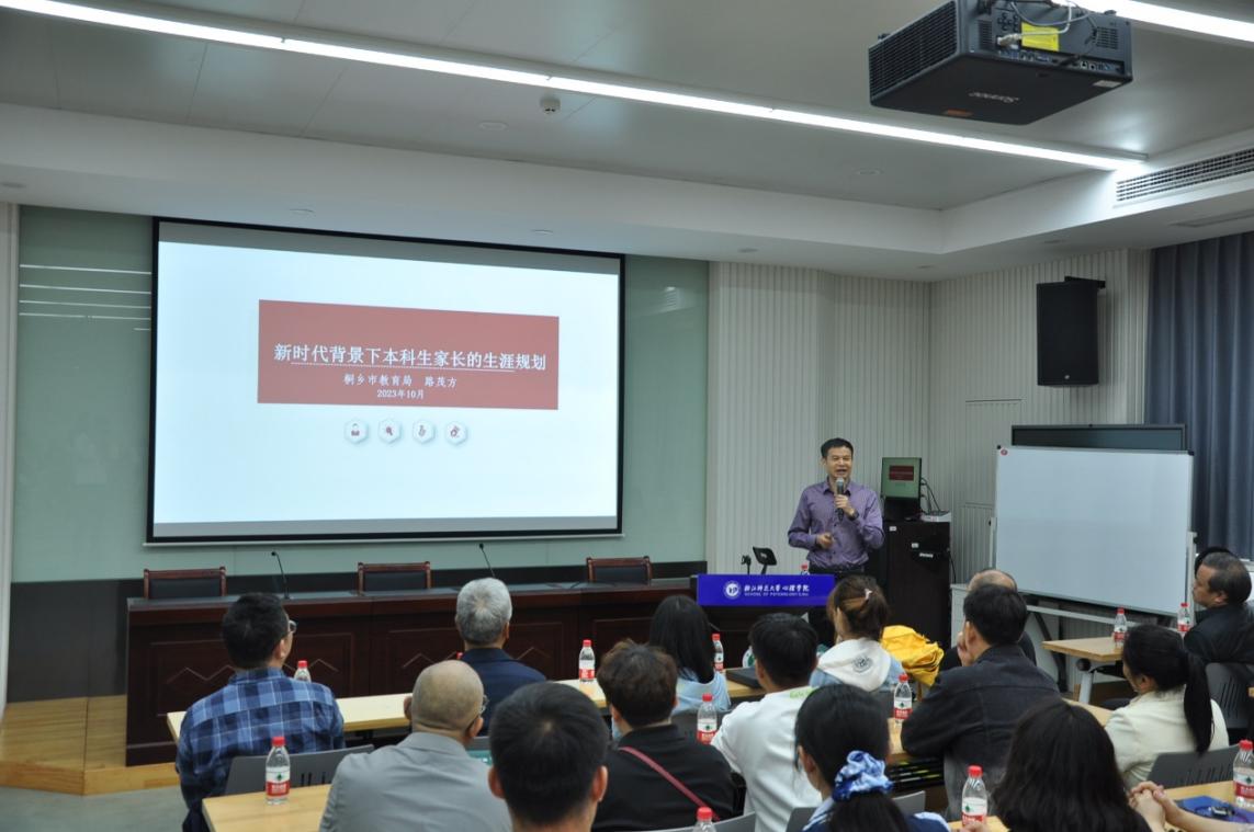 路茂方作为资深教育工作者,介绍了新时代背景下本科生家长的生涯规划。在对当前心理学专业就业形势的深刻分析基础上,他强调了家长应在充实工具储备的基础上与学生平等交流,共同规划学生的职业发展。