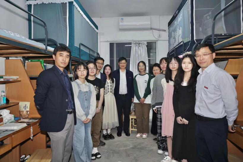 院长孙炳海,书记马莉,学院副院长贾磊,学院党委委员詹沛达,系主任陈海德,教务办主任施丽君,研办主任朱婷,学工办主任喻松,新生班主任谢芳、李文俏,学工办辅导员萨伊甫加马丽·依马木、柏战等同时也走访各新生寝室。