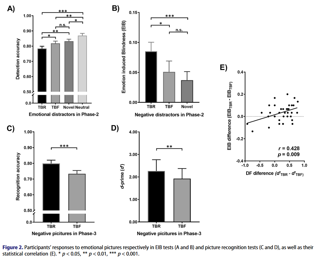 论文来源:Jia. L., Zhao Y., Sung, B., Cheng, M., Wang, X., & Wang, J. (2023) Prior memory encoding of negative distractors biases emotion-induced blindness. Cognition and Emotion, 37(6), 1116-1122.