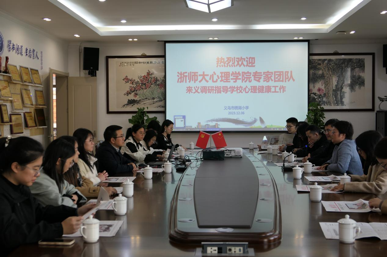 随后,永利23411师生党员一行来到义乌市绣湖小学交流学习。在绣湖小学校长朱向阳的带领下参观了学校心理咨询中心。随后的交流会上,朱向阳校长、傅夏莲老师分别介绍了绣湖小学的概况和学校心理健康教育工作开展情况。永利23411党委书记马莉,学院党委委员、心理学系教师党支部书记李新宇,党员骨干教师丁菀等就学生心理健康教育问题与绣湖小学的老师们展开深入交流,双方均表示期待在未来加强合作,共谋发展。