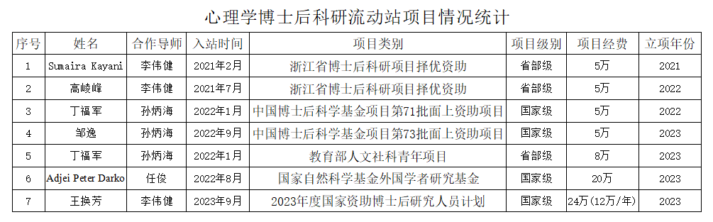 心理学博士后科研流动站一直重视教师教育研究,拥有教师教育神经科学为国内首个交叉学科博士点,是教育学、心理学、神经科学交叉融合形成的学科方向,应用行为科学和神经科学手段探索教育的生物学规律,特别是大脑的活动规律,以科学实证出发应对教师教育领域中的重大需求。流动站在学科带头人李伟健教授带领下,组建了一支视野开阔、学术水平高的研究团队,数十年来在教师教育神经科学与心理健康基础研究领域不断取得显著成绩。近年来,永利23411高度重视博士后队伍建设工作,不断加大博士后招收和培养力度,先后出台博士后院长基金资助制度、博士后合作导师助理制度和基金研究定期指导制度,推进博士后流动站工作的新突破、新跨越。目前,流动站在站博士后10余人,建站以来已有6名博士后获7项科学基金资助。