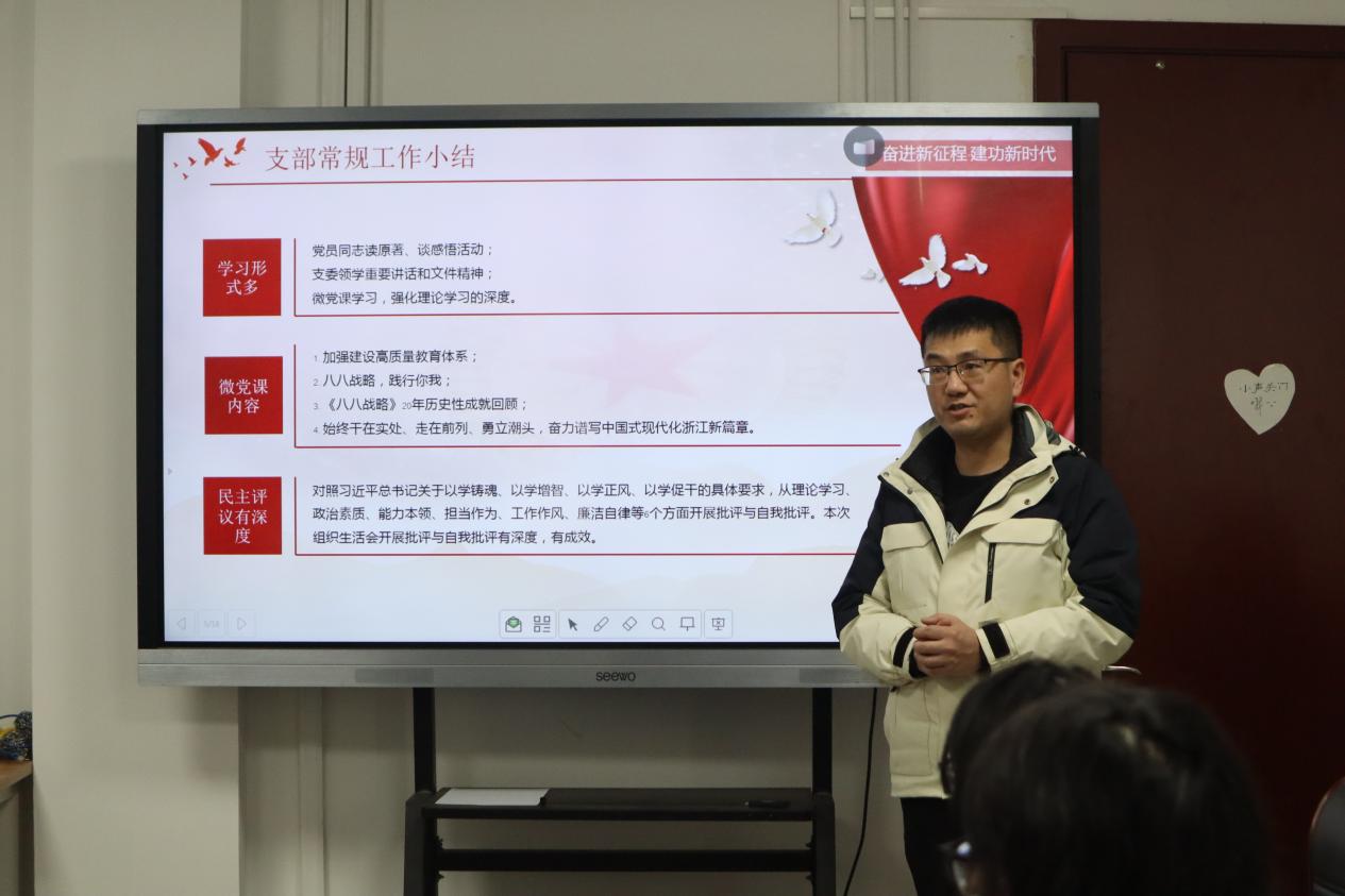 在听取汇报后,学院专职组织员黄永新老师指出,党建工作始终要围绕学科建设和学院发展这一中心开展,希望各支部更好发挥引领作用,坚持守正创新,推动理论教育的实际成效转化为推动发展的强大动力,为学院发展贡献智慧和力量。各支部之间也要深化交流合作,加强党组织建设、提高党组织活力。