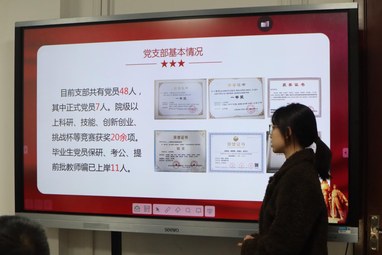 会上,2个教师党支部、5个学生党支部书记对支部过去一年的工作进行了全面梳理,回顾总结了本支部工作上取得的成效,指出存在的问题,并提出接下来支部建设的工作思路和工作计划。