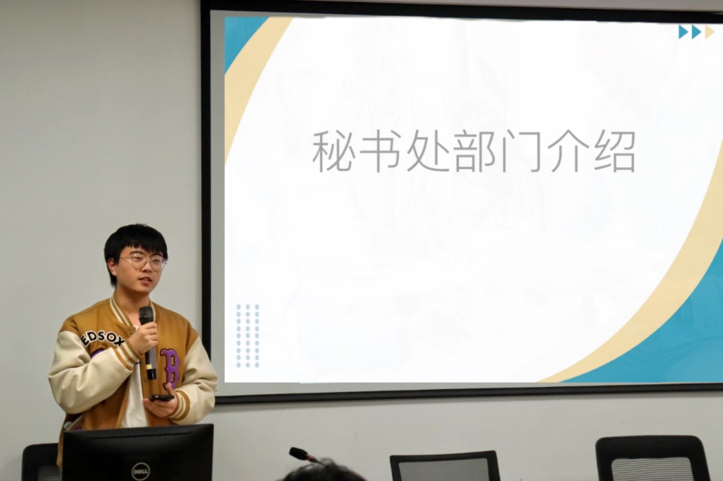 在与计算机学院的交流中,学生会秘书处李元一从部门主要工作、部门氛围和部门成员发展三个方面,详细介绍了秘书处的工作情况。青大队江溢进行了志愿活动分享,表达相互交流,相互促进的希望。我院代表积极提问,讨论反思。