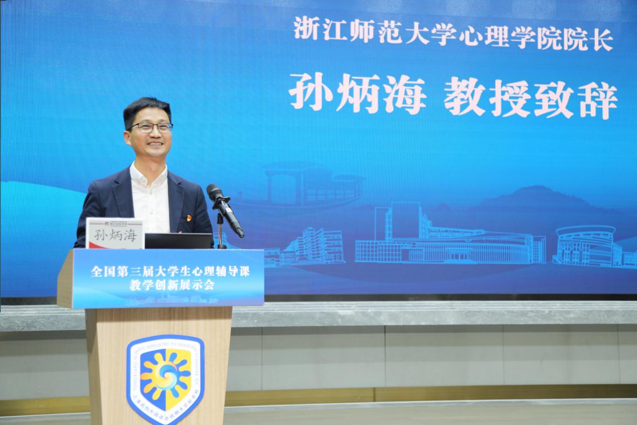 岑超超副处长代表浙江省教育厅对选手们表示祝贺,介绍了浙江省中小学心理健康教育的整体情况。