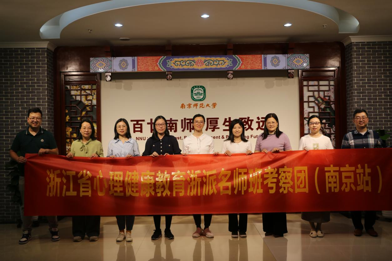 5月8日下午,浙派名师考察团由浙师大永利23411副院长贾磊、社会服务中心赵轩带队来到了南京师范大学永利23411,南师大永利23411党委书记周红、副书记薛艳、副院长王云强等领导接待了考察团,并与名师团展开座谈。会后学员纷纷表示对南京的心理健康教育科研有了更深入的了解。