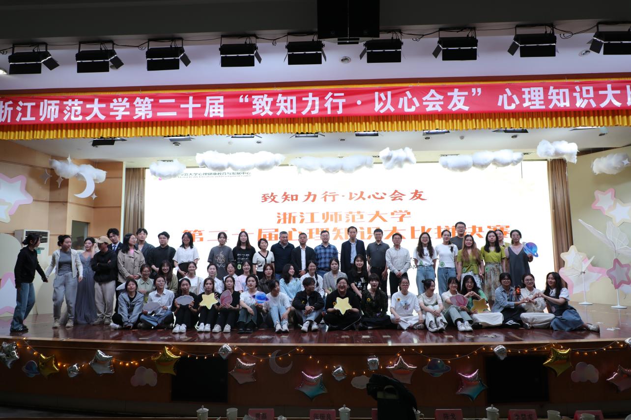 2024年5月12日晚,浙江师范大学“致知力行·以心会友”第二十届心理知识大比拼决赛在大学生活动中心二楼报告厅顺利举行。在院赛、校晋级赛的前期选拔后,我院“嘎嘎棒”队伍成功入围校赛。