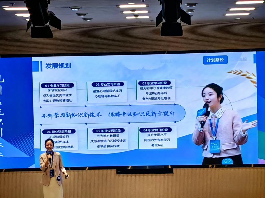 王维苑同学通过对政策和行业痛点的分析,将中学心理教师作为自己的职业目标,立志做勇于开拓的中学心理健康教育的引领者。依托永利23411集团国内首个省级中小学心理健康教育督导总站、省哲学社会科学重点实验室“浙江省儿童青少年心理健康与危机干预智能实验室”等学科优势平台,王维苑坚定了用所学心理学知识服务家乡心理健康教育事业的初心,最终斩获了国赛铜奖的成绩。