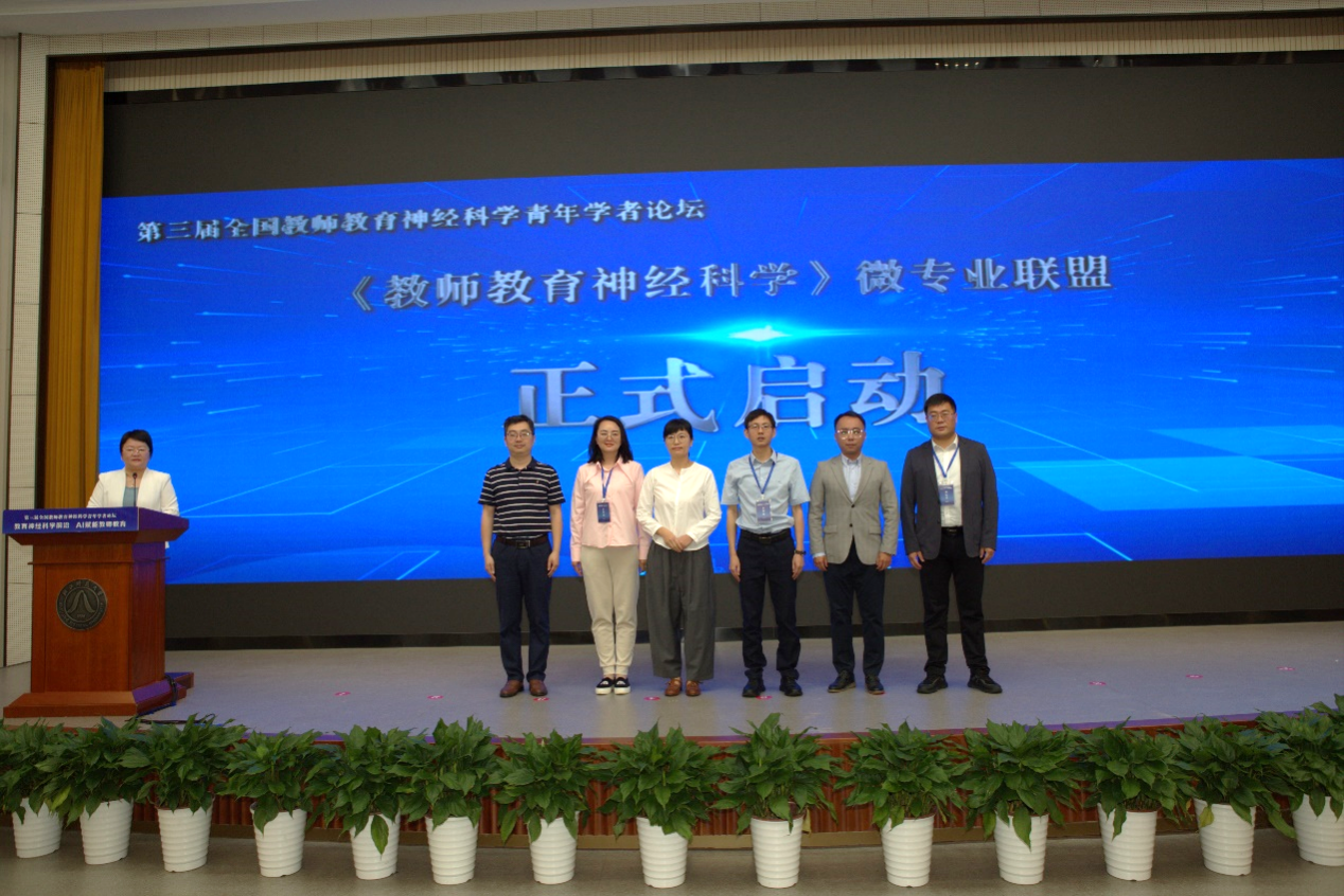 贾磊、李旭洲、赵雪艳、汪海彬、李秀丽和李飞分别代表永利23411集团、云南师范大学教育学部、伊犁师范大学教育科学学院、黄山学院教育科学学院、海南热带海洋学院民族学院、通化师范学院教育科学学院共同启动《教师教育神经科学》微专业联盟。