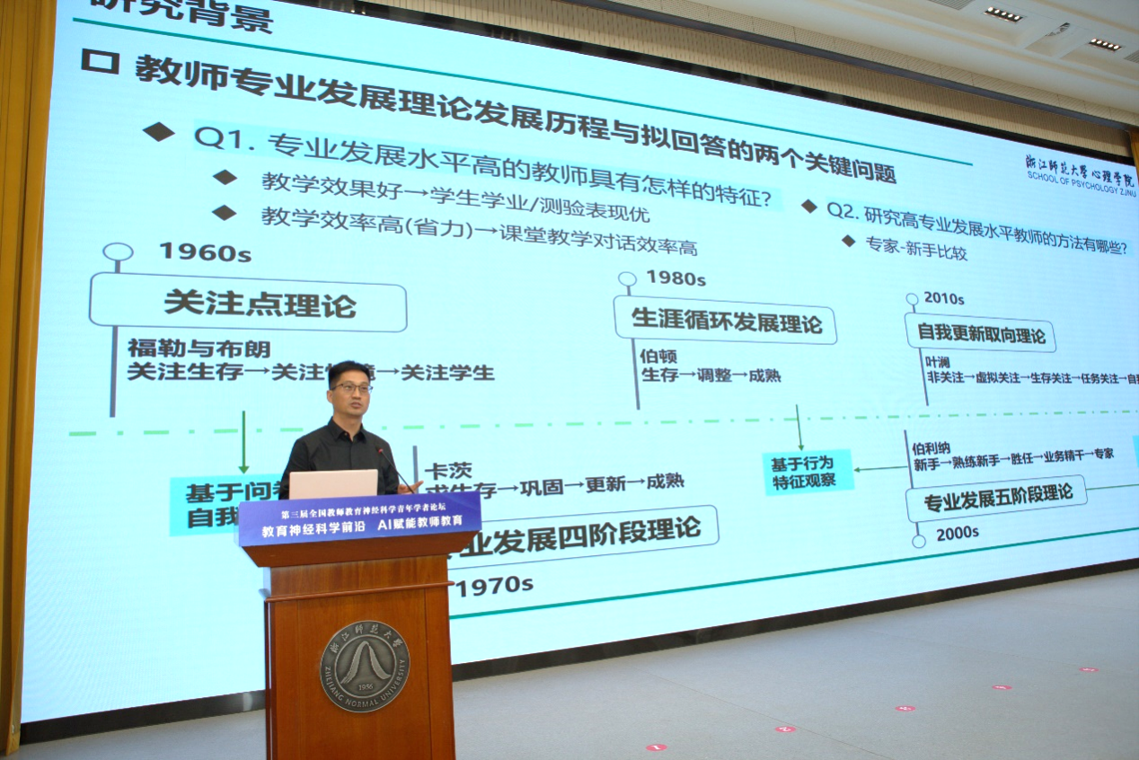 浙江师范大学孙炳海教授汇报了真实课堂互动情境中专家和新手教师在教学互动中教学行为与神经同步差异的最新发现。