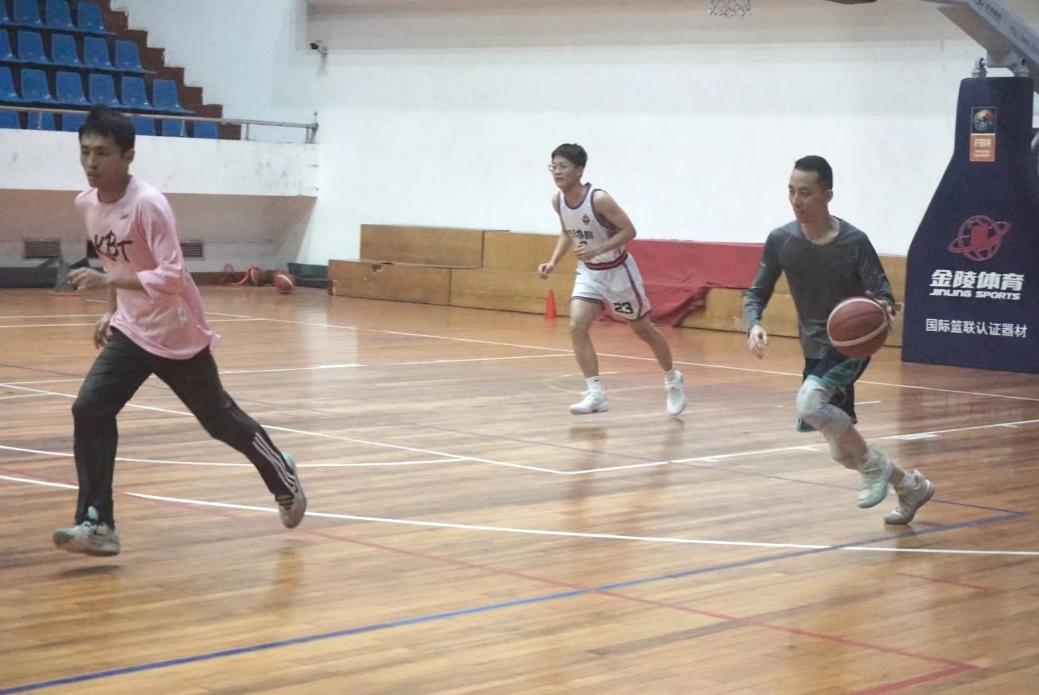 第三节,学生队铆足了劲奋起直追,在篮球场上冲锋、跳跃、传球,教师队身姿矫健,利落投篮,双方上演一场扣人心弦拉锯战。节末,汪俊老师与陈海德老师相继命中两分球,以76比69的比分结束本节比赛。