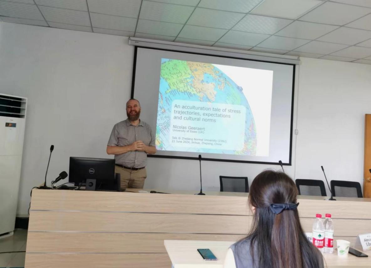 6月21日下午,“尖峰卓越心理讲堂第八十四讲”邀请到埃塞克斯大学心理学教授Nicolas Geeraert,为我院师生作题为《An Acculturation Tale of Stress Trajectories, Expectations and Cultural Norms》的精彩讲座。讲座由永利23411孙茜老师主持,我院教师、本科生、研究生共约100人到场聆听讲座。