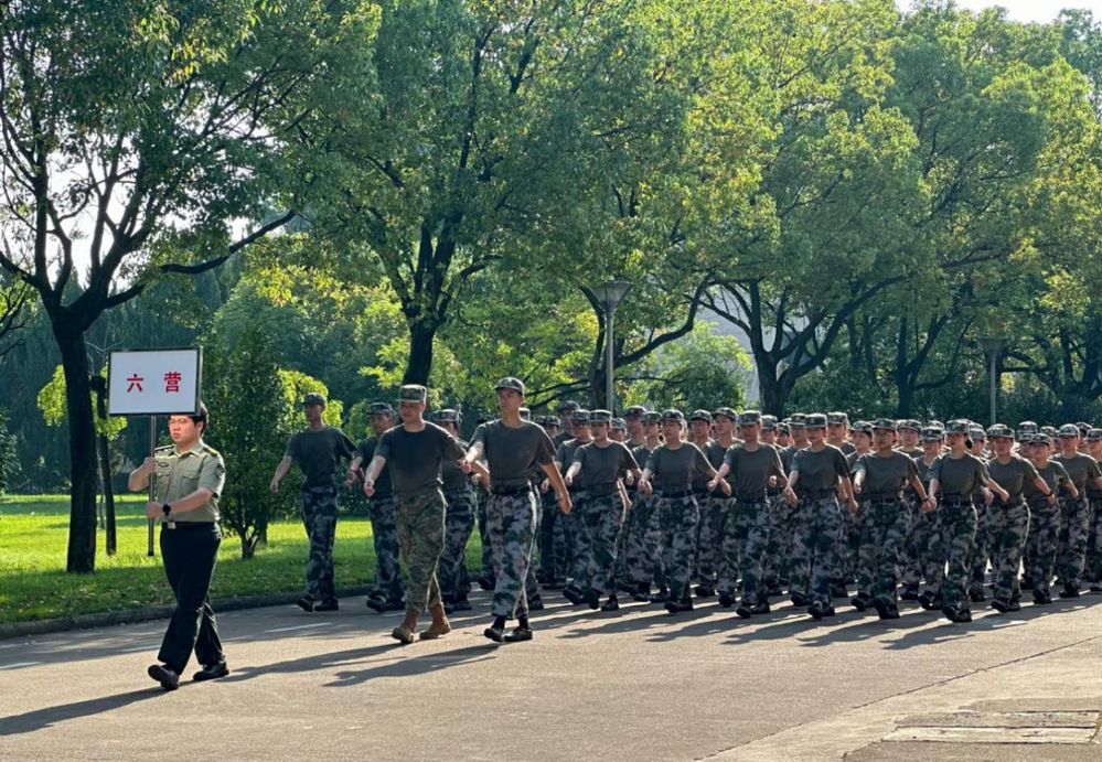 每天早上雷打不动的第一课便是站好军姿,双脚分开约60度,脚跟并拢,双手紧贴裤缝,两肩后张,收腹,目视前方,在几天的接触下,这些动作我们都熟络于心。清晨的风轻轻撩动着我们的头发,但阳光却依然毒辣,虽然可能只是短短十分钟,但好像有一个世纪这么漫长。