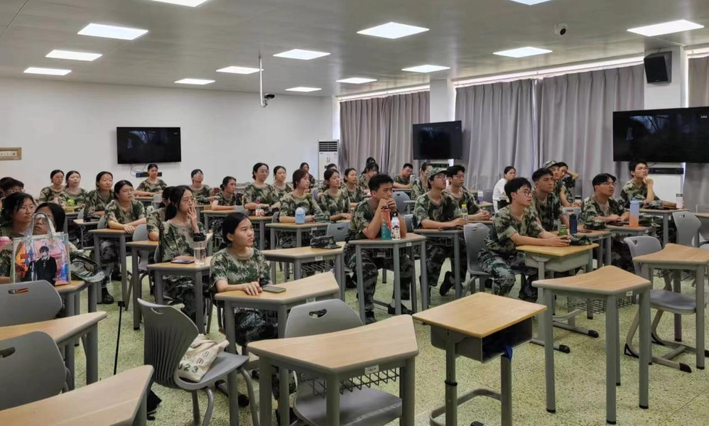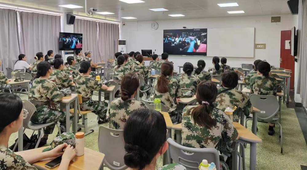在训练之余,同学们积极参与关于应急救护知识普及和热射病防治培训的讲座,观看《建党伟业》《建军大业》《建国大业》等爱国教育电影。