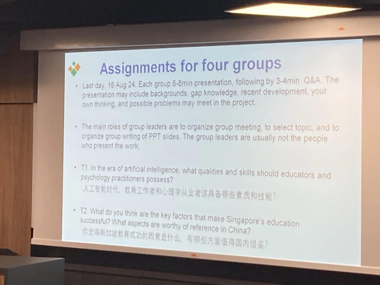 8月6日至8日的上午段,同学们在新加坡南洋理工大学(Nanyang Technological University, NTU)进行了充实的课程学习。龚银汉教授为大家带来了“人工智能与教育”、“新加坡社会与教育发展”和“新加坡高等教育的改革和创新”等专题课程。他通过介绍脑机接口等前沿技术,展示了人工智能在心理学中的广泛应用,拓宽了学生们的学术视野。此外,龚老师从新加坡的历史沿革和现代社会建设方面展开,详细地介绍了新加坡教育的发展历程。课堂上的互动环节激发了学生们的思考,大家积极提问,与龚教授进行了深入交流。