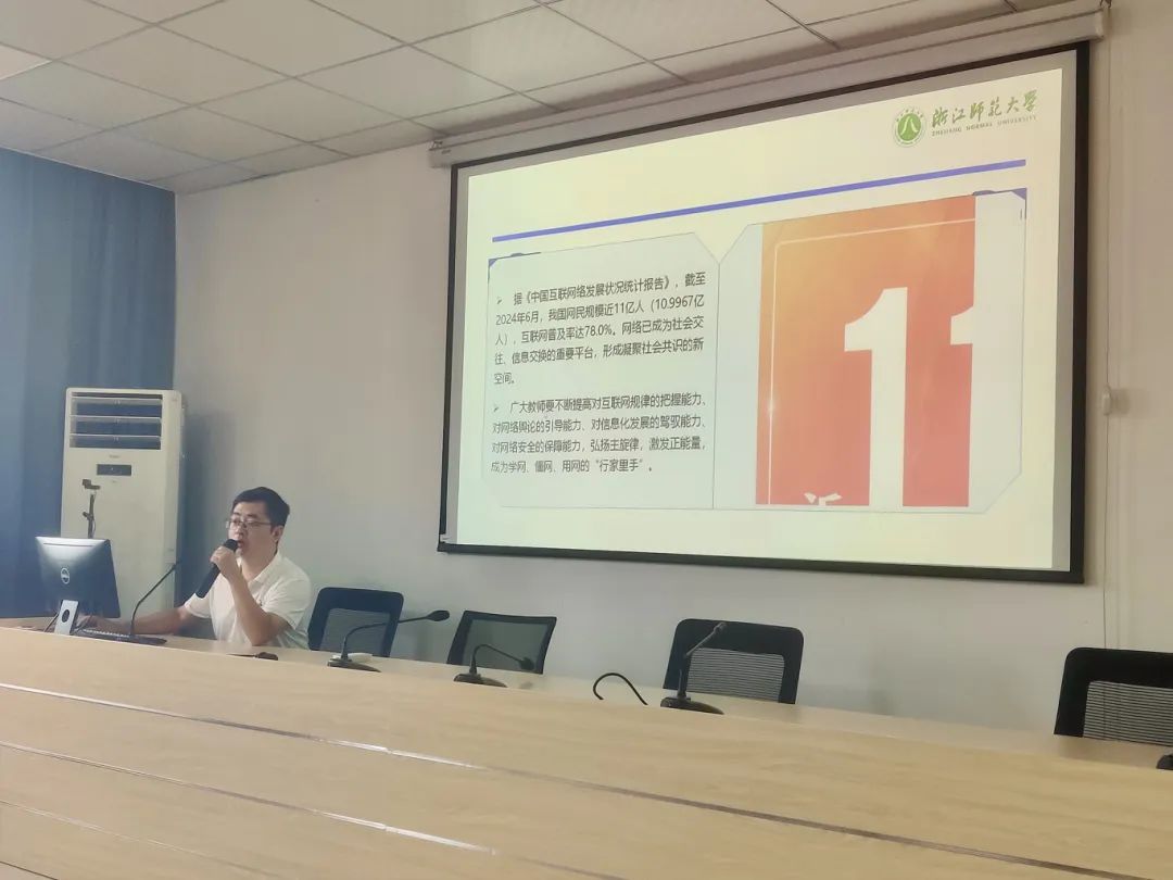 院长孙炳海回顾了暑假以来学院各项工作的开展情况,重点传达了学院暑期人才工作会议精神。他指出,我们要围绕“一切为了学生”的宗旨,要与时俱进切实提高心理学应用型人才核心竞争力:一是心理咨询和心理辅导能力,二是心理测评和数智监测能力,三是活动和教学课程研发能力,四是心理预防和智慧干预能力,五是顶层设计和策划组织能力,六是实验设计和科学研究能力,七是主动承担社会责任的能力,八是学会自主成长的能力,九是融入学校教育的能力。会议最后,新入职教师贾熙泽、彭思韦做了自我介绍。