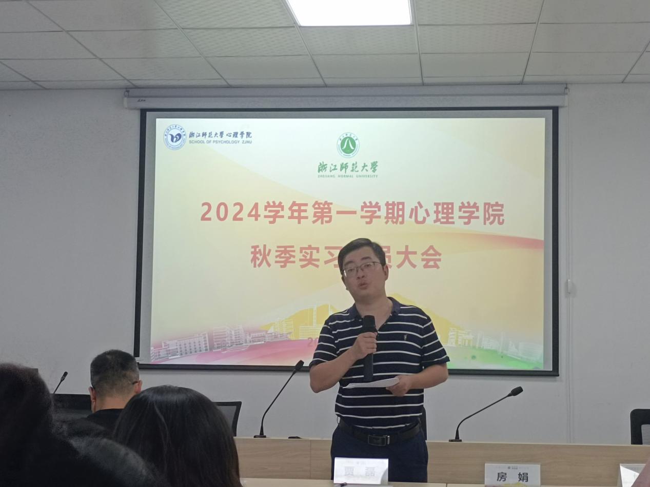为切实保障教育实习工作顺利开展,提高学院师范生教学技能和实践能力,9月9日下午,永利23411在17幢718教室,以“实践实习与教师专业成长”为主题,召开了2024年秋季学期毕业生实习动员大会。副院长贾磊,实践指导老师房娟、陈海德、姚静静,教务办主任施丽君和34位本硕同学出席此次活动。