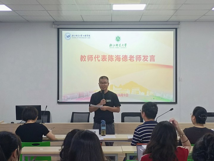 实习指导教师代表陈海德老师根据自身丰富经验,与同学们交流了实习中的大小事项,希望同学们心怀感恩、转变角色、主动探索,既要扮演好教师角色,也要虚心诚恳,做好“学徒”,在实习期间展示浙师大学子的优良风貌。