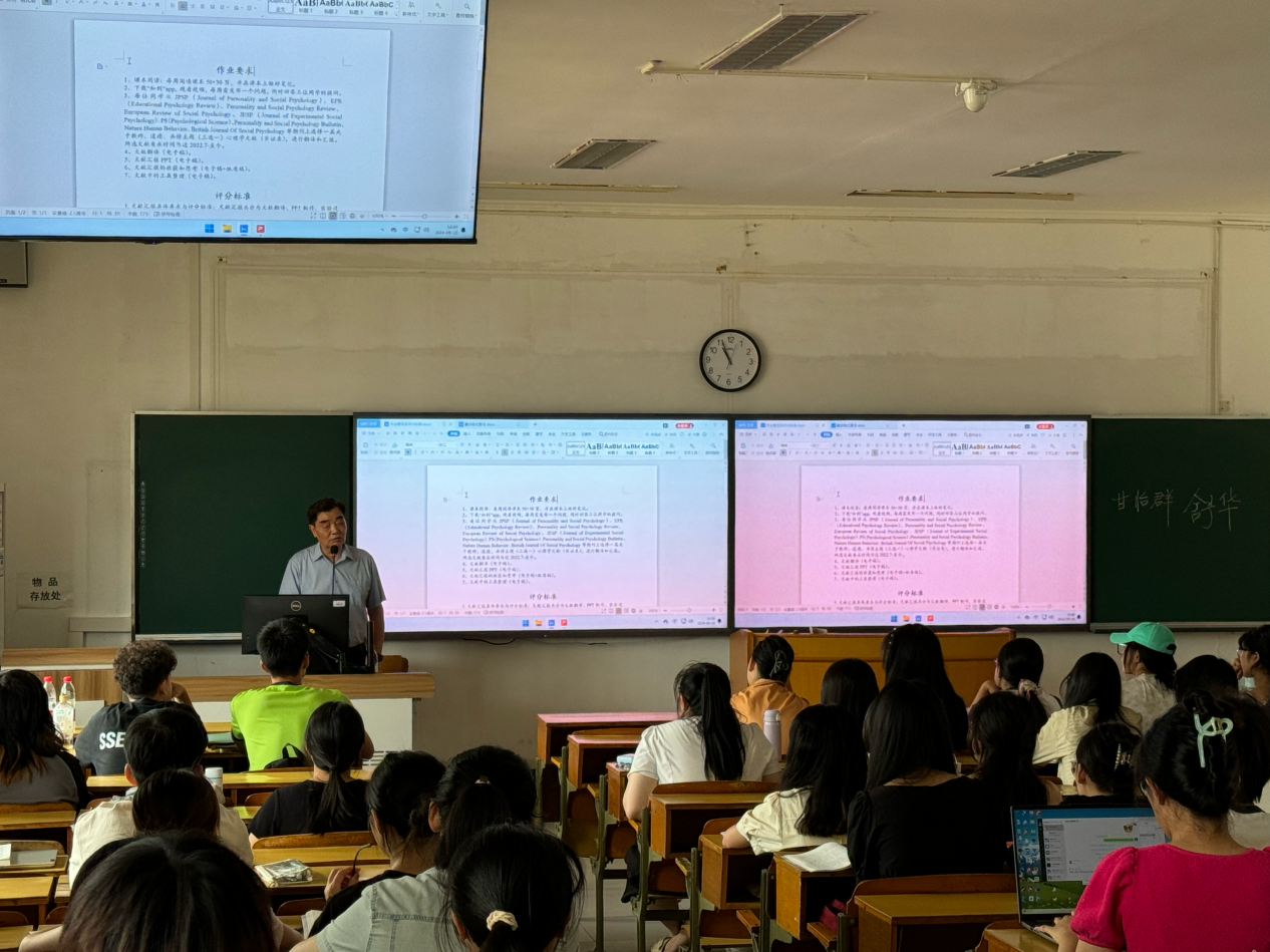 浙江师范大学资深教授乐国安老师为永利23411本科生讲授《社会心理学》开学第一课。乐国安教授与学生分享了社会心理学在中国的发展以及如何高效学习社会心理学的方法。他指出,学习社会心理学,应当有扎实的知识储备,以构建对复杂社会现象的全面理解;应当与实际社会问题深度结合,以理论学习指导具体实践;应当紧密结合现代科学技术,以先进的研究方法推动学科创新。