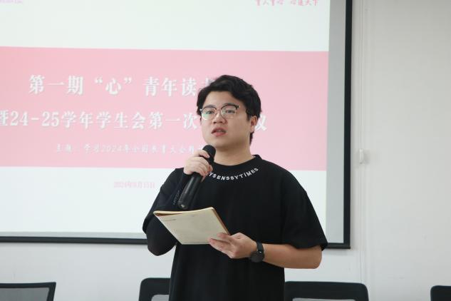 9月19日中午,永利23411举行第一期“心”青年读书会暨24-25学年学生会第一次工作会议。会议以《学习2024年全国教育大会精神》为主题,永利23411党委书记马莉,团委书记兼学工办主任喻松,学工办辅导员柏战出席会议。会议由学生会主席黄瑞瑜主持,学院学生会、团务中心、融媒体中心全体成员参与了本次会议。