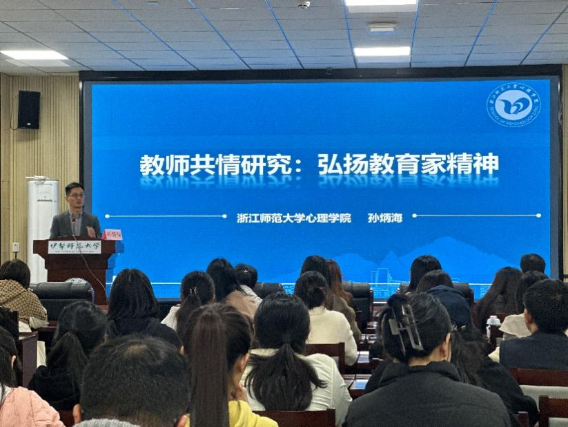 10月12日,由伊犁师范大学教育科学学院院长马永全主持,浙江师范大学心理院长孙炳海开设了《教师共情研究:弘扬教育家精神》线下主题课。孙炳海基于二十年的共情研究基础,与伊犁师范大学近百名学生共同探讨了教育家精神以及教师共情的重要性,并就研究方法的学习、教师共情疲劳的处理等议题与学生深入讨论,提升了学生的专业认知。此外,博士研究生党员范丽婷还分享了关于道德心理学的研究。