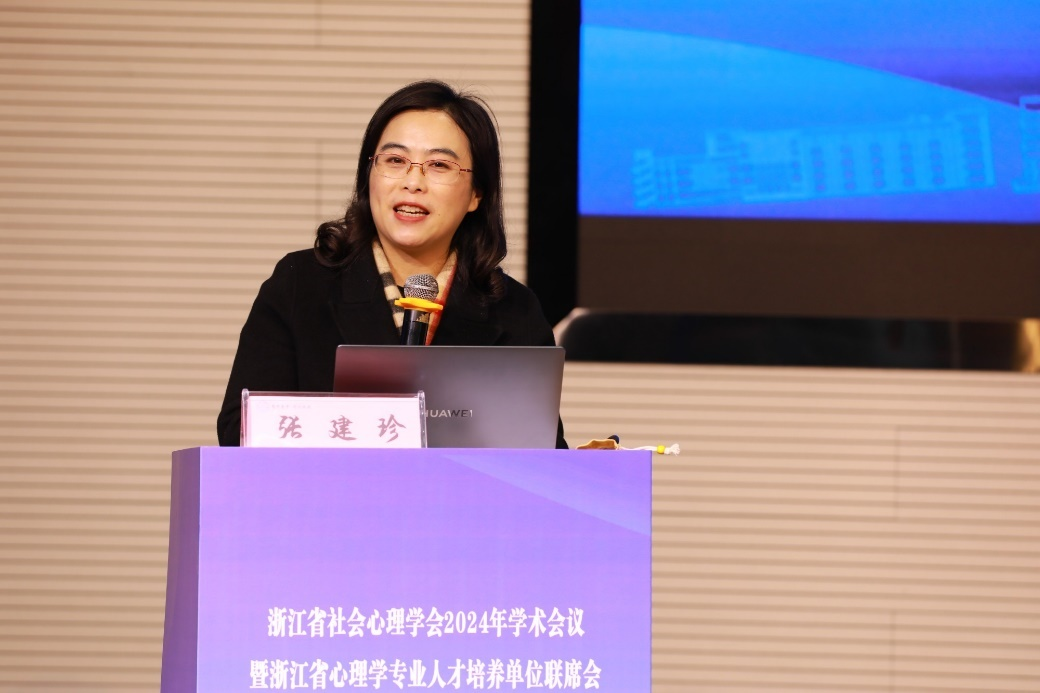 张建珍代表浙江师范大学欢迎出席会议的专家学者,她指出浙江省在社会心理服务体系的建设上已取得显著成效,永利23411集团始终致力于培养专业人才、开展社会服务工作,推动心理健康教育发展,为社会心理学的研究和实践提供了坚实的支持。