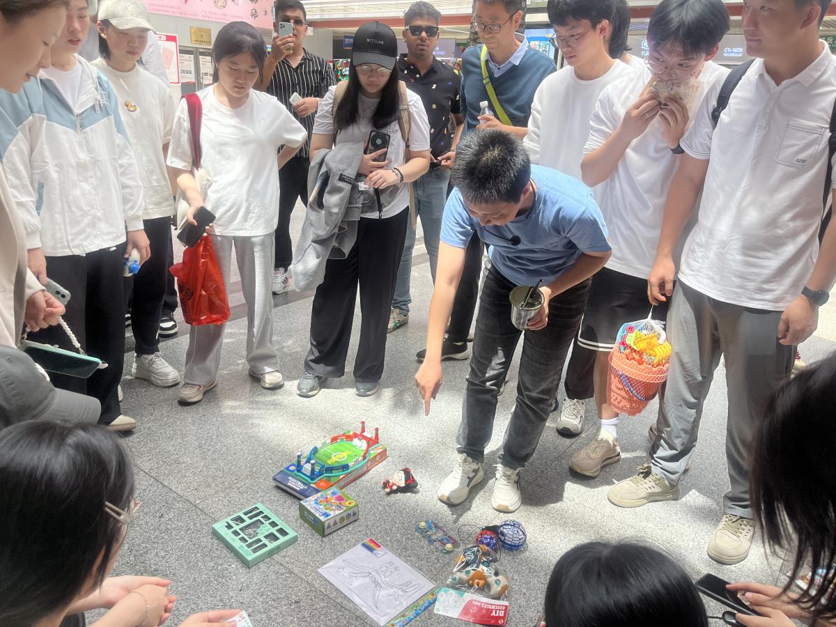 同学们充分发挥小组成员智慧,沉着回答及时补充,现场要求既要“买得对”更要“说得好”,最终每组都在特定年龄段玩具拍卖中获得了胡教授“加价认可”。拍卖现场气氛热烈,甚至吸引了商铺老板和路人驻足旁听。
